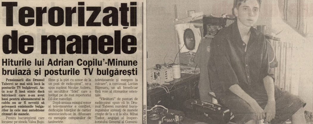 🏴☠️ Paul Breazu, jurnalist, DJ și prieten, preocupat de arheologia muzicii românești, publică un text fain, în TheAtticMag, despre pirații undelor hertziene. Mai exact, despre radiourile ilegale din Bucureștiul Tranziției. Un moment al acelor vremuri ușor anarhice: Ultimele cuvinte lansate în eter de DJ Shmeck au fost: „Cred că în acest moment ar trebui să punem punct.” Apoi, în cameră au intrat agenții și polițiștii. 😬